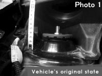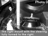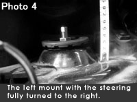 When resting on level ground, the size of the space changes when you turn the steering wheel. This too is due to the vehicle structure, and normal. Photo 3 shows the right mount and Photo 4 the left one, with the steering wheel turned fully to the right.