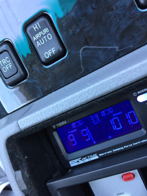 車内から減衰力調整が細かく出来るのも凄くいいです。EDFC ACTIVE PROの取付が終わり、色んなモードを試してみました。このコントローラーを接続すると、減衰力が16から32、64段階が追加で選べるようになります。マニュアルで64段階を好みにセッティングする事はないと思いますが、オートだとより細かく調整してくれるのでいいです。